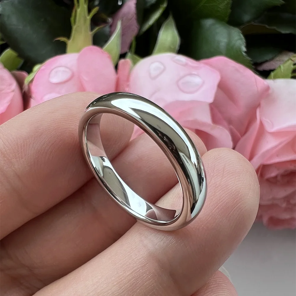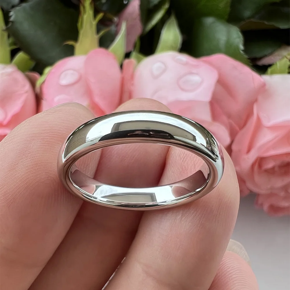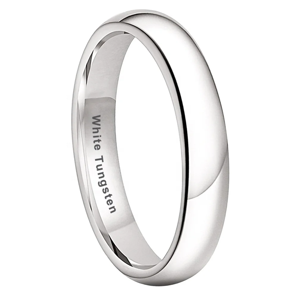 Coolstyle Jewelry 4mm White Tungsten Ring for Women Trendy Engagement Wedding Band Fashion Jewelry Domed Polished Comfort Fit